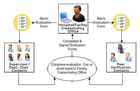 Additionally, the Facility Credentialing Office will email a Professional Practice Evaluation to your Peer References and most likely your Supervisor/Dept. Chair References. Click HERE and scroll down to view examples of these evaluation questionnaires. Again, each facility is different. The evaluation form may request validation of your status and work dates at that facility along with a lengthy form covering your: