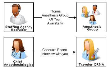The Chief Anesthesiologist will want to conduct an interview with you (most likely by phone call). Based on the satisfaction of the interview, the Anesthesiologist Group gets back in touch with your Staff Agency with their approval. They may also verbally request some peer references from you. So it's good to have names and numbers handy.
